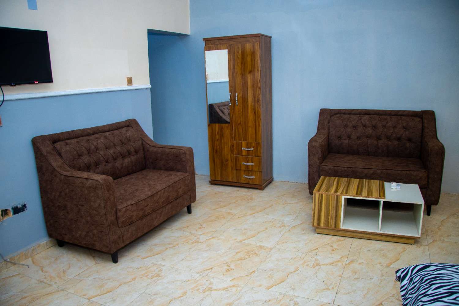 Welcome to the Portugal room—where warmth and relaxation meet understated elegance. Enjoy rest on a comfortable single bed, stay entertained with a high-definition screen TV, and remain focused with a dedicated study table. The private ensuite bathroom ensures convenience and privacy, while fast, free WiFi keeps you connected throughout your stay. Supported by a 24-hour solar power system, this room offers uninterrupted comfort from check-in to check-out.