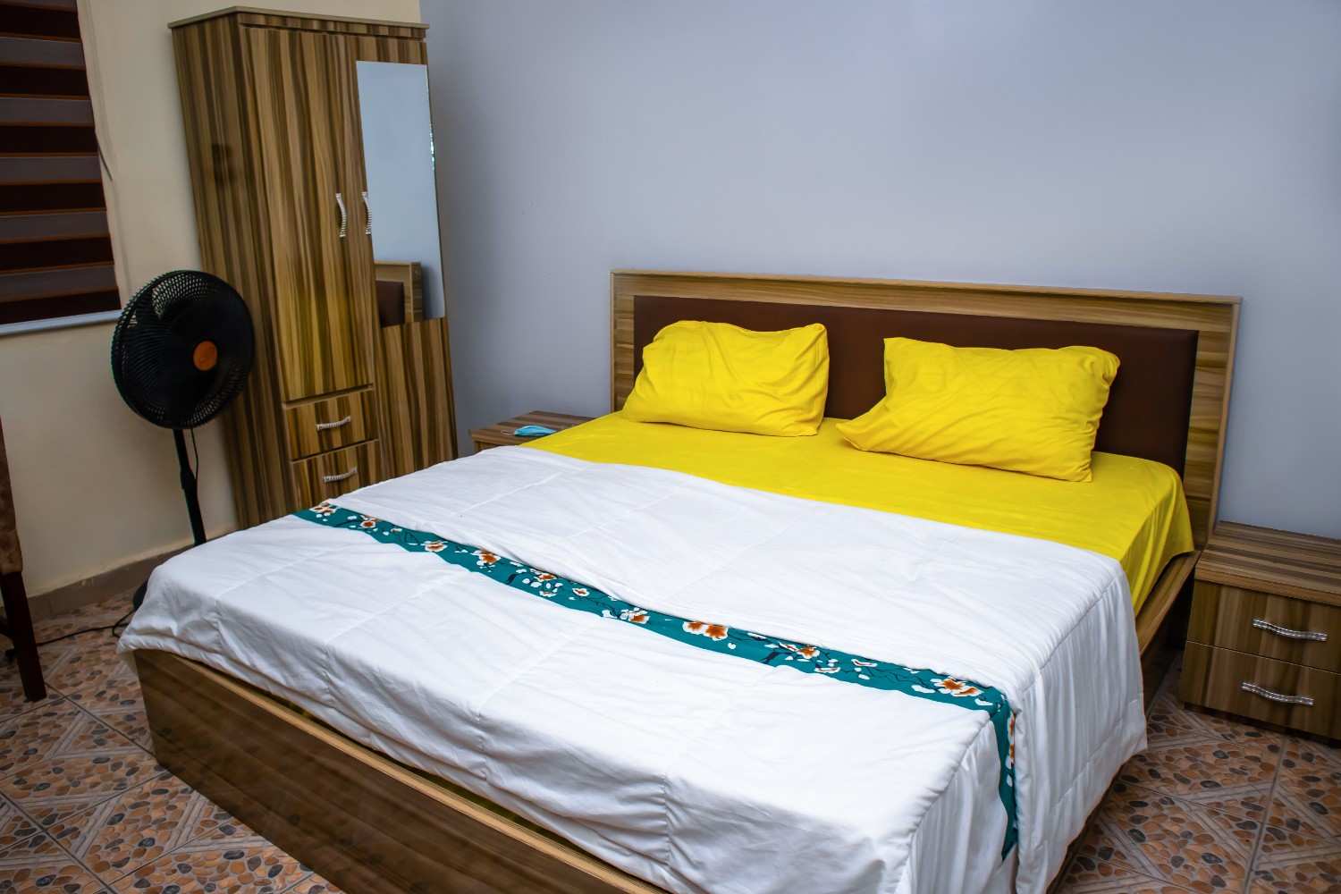 The ‘Nigeria’ room combines comfort and practicality, featuring a cozy single bed, high-definition screen TV, dedicated study table, private ensuite bathroom, and fast WiFi. Immerse yourself in a relaxed and functional space tailored for your needs